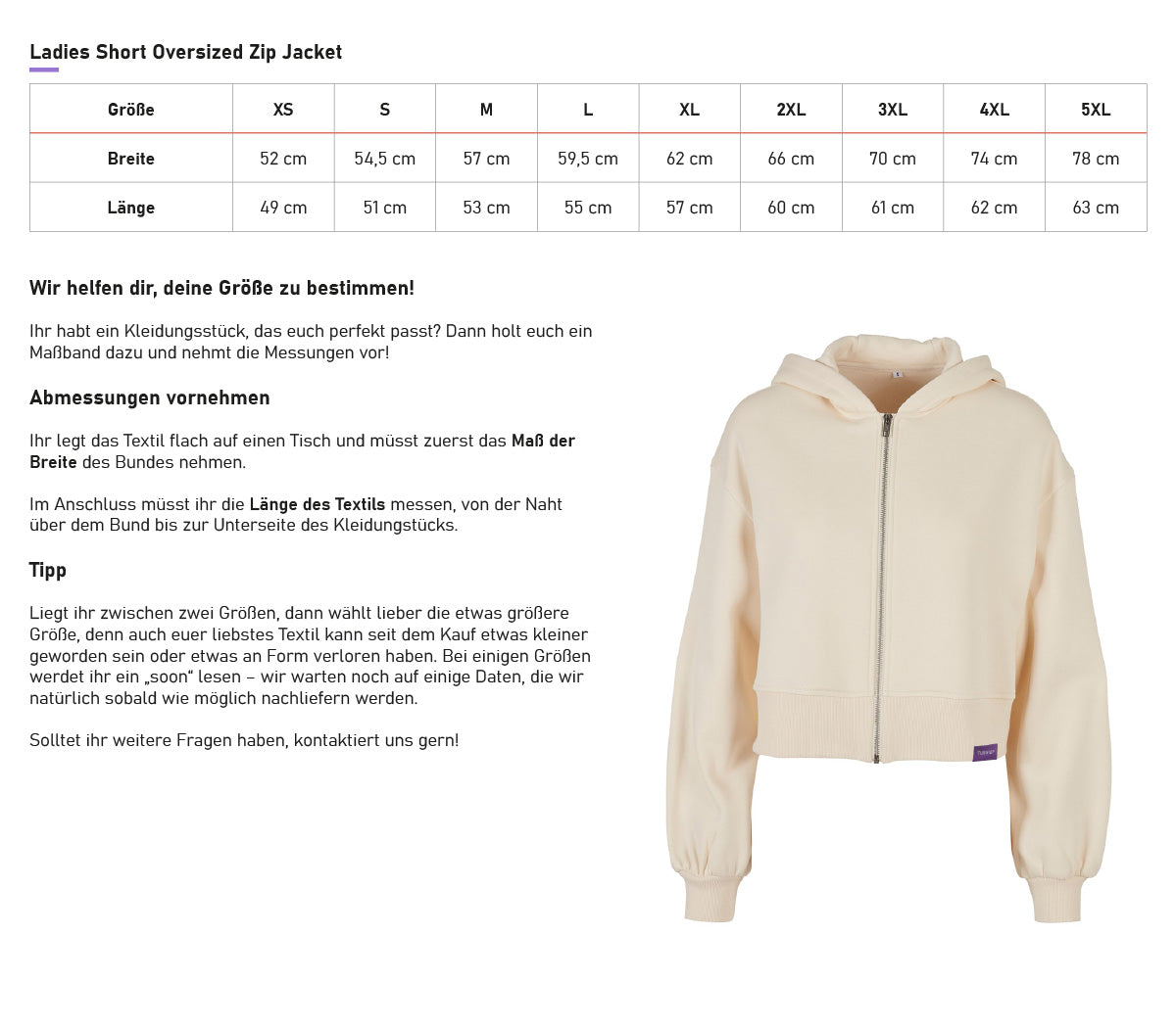 Unser Ladies Short Oversized Zipper hat eine extra große Kapuze, während die kurze Länge durch breite Rippenbündchen an Ärmeln und Saum unterstrichen wird. Mit kleinem Brand auf der Vorderseite. Materialangabe: 65% Baumwolle / 35% Polyester